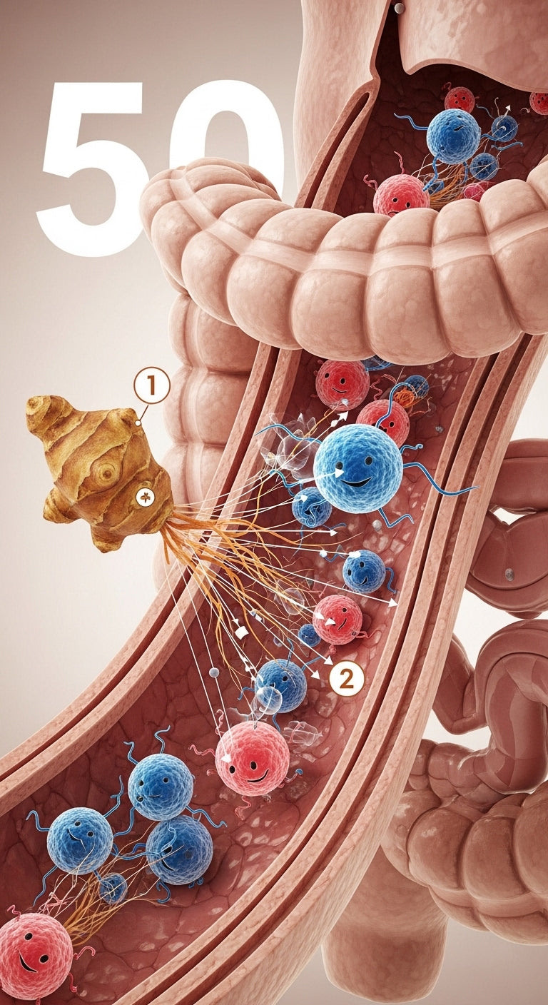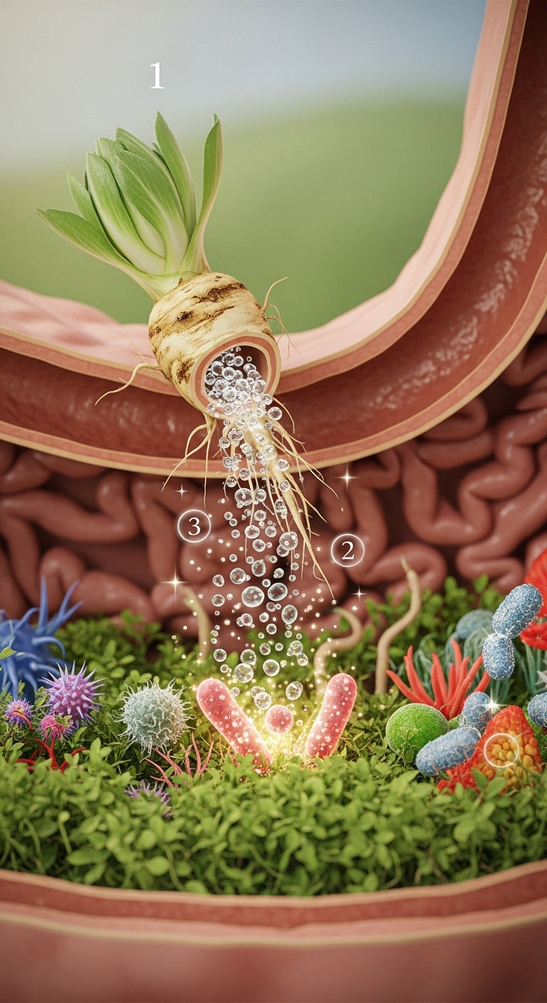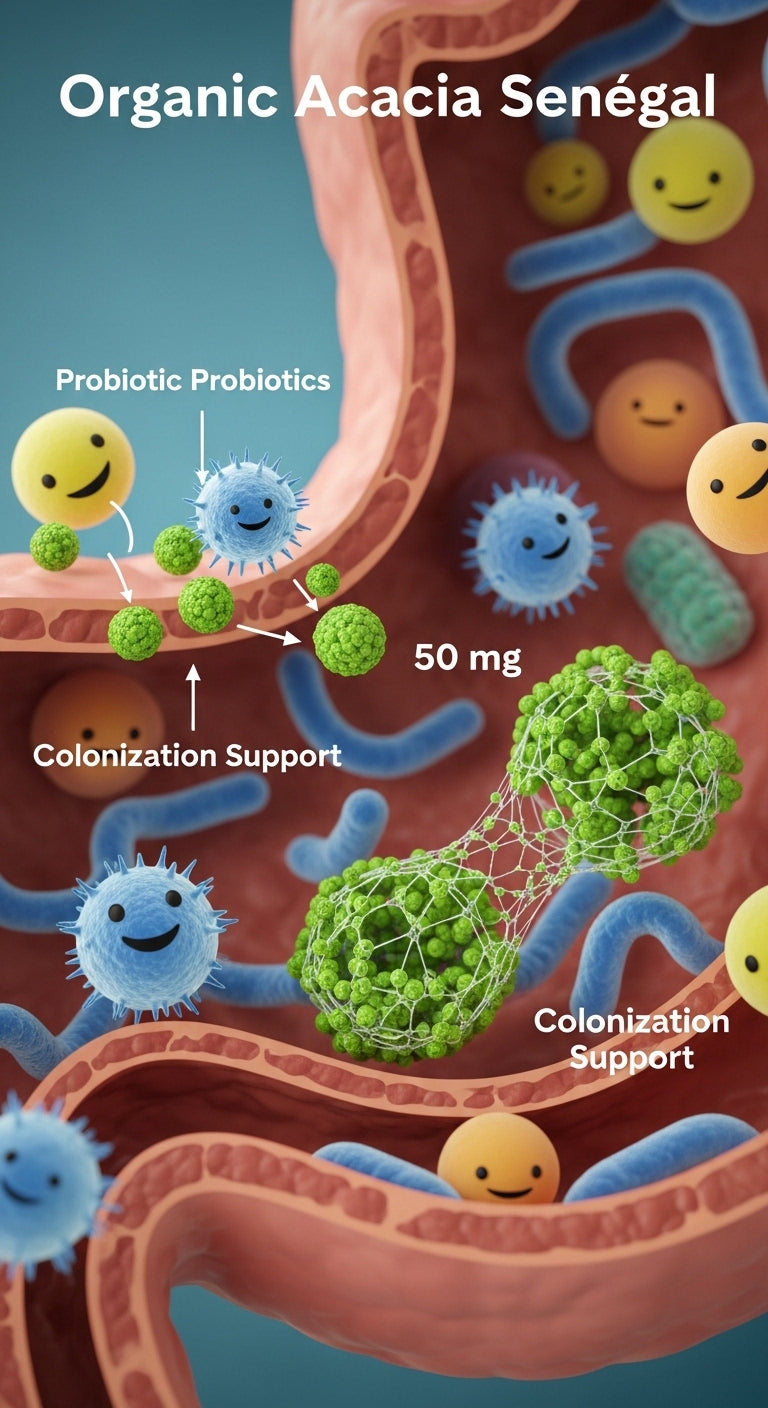 Органичните фибри от йерусалимски артишок, акация и цикория служат като храна за добрите бактерии и подпомагат колонизацията им в червата.